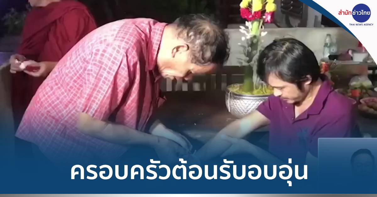 พะเยา 14 ต.ค.-หนุ่มพะเยาแรงงานจากอิสราเอล ที่ได้รับบาดเจ็บ กลับถึงบ้านเกิด ท่ามกลางพระสงฆ์ ญาติพี่น้องที่เดินทางมารับและร่วมแสดงความยินดีที่ได้รับความปลอดภัย