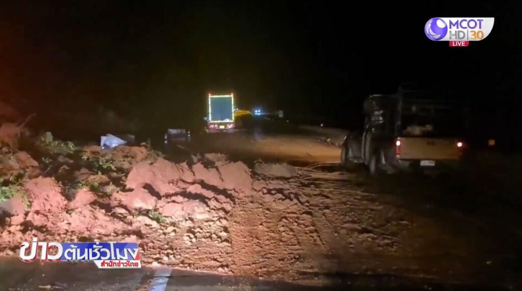 ลำปาง 15 ต.ค. – ฝนตกหนัก ดินสไลด์-ก้อนหินถล่ม ปิดทับถนนบนอุทยานแห่งชาติดอยขุนตาล จ.ลำปาง รถมองไม่เห็นพุ่งชนเสียหาย มีผู้บาดเจ็บ
