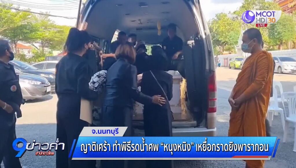 นนทบุรี 15 ต.ค. – ญาติน้อง “หนุงหนิง” เหยื่อเหตุยิงกลางห้างพารากอน เสียชีวิตเป็นรายที่ 3 ทำพิธีรดน้ำศพ ด้วยความอาลัย ขณะที่นายกฯ และ รมว.ยุติธรรม ส่งพวงหรีด ร่วมแสดงความเสียใจ