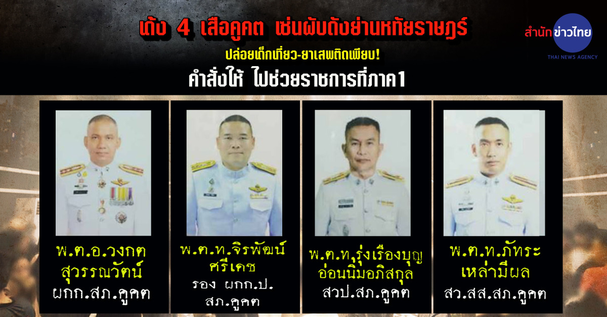 ปทุมธานี 23 ต.ค. – เด้ง 4 เสือ สภ.คูคต เซ่นผับดังย่านหทัยราษฎร์ นักเที่ยวเสพยา ปล่อยเด็กเข้า ยาเสพติดเกลื่อนพื้น การ์ดพกปืนผิดกฎหมาย