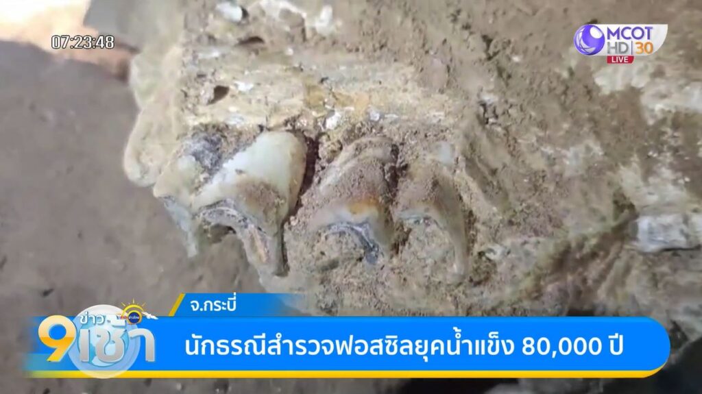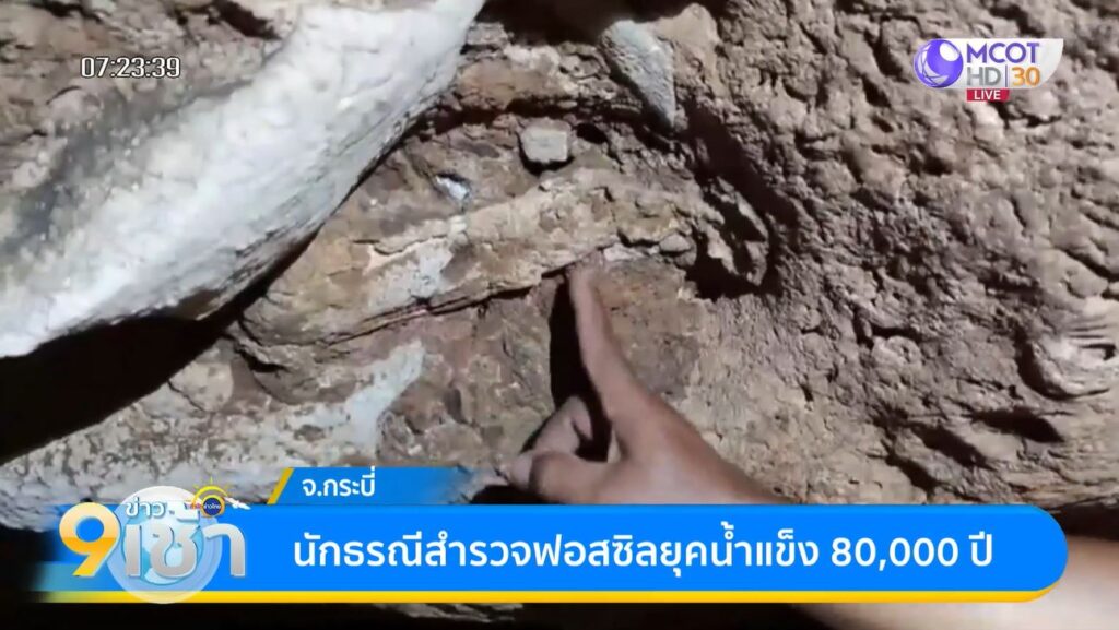 กระบี่ 23 ต.ค. – ทีมนักวิจัยเข้าตรวจสอบฟอสซิลภายในถ้ำ ที่กระบี่ พบร่องรอยสัตว์หลายชนิด คาดอายุประมาณ 80,000 ปี