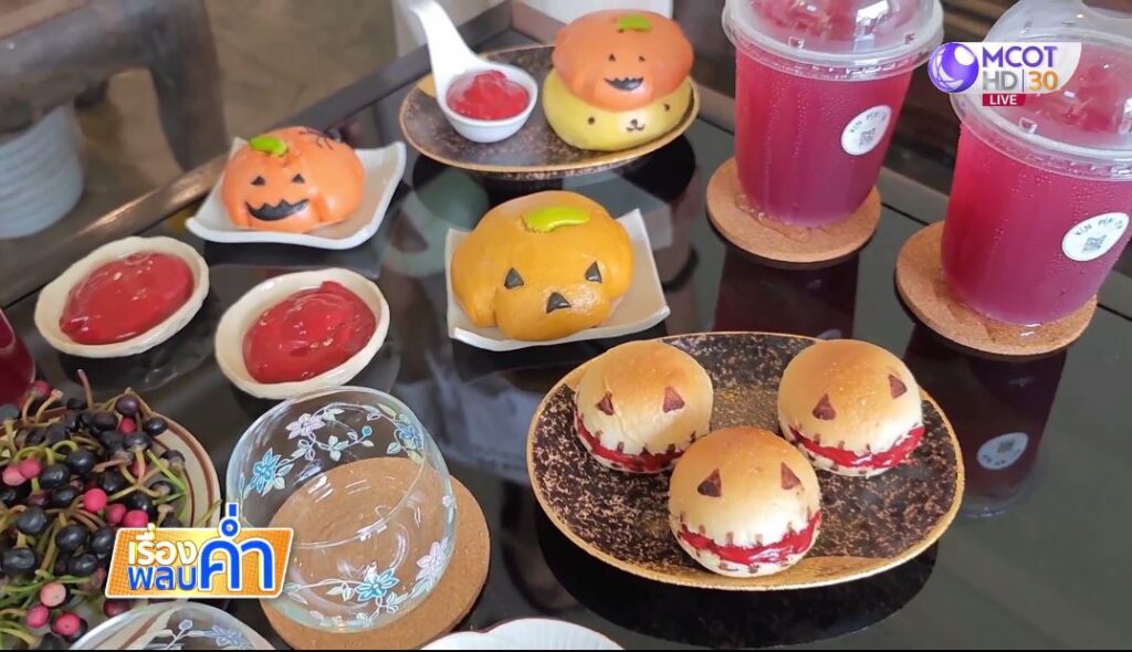ไส้สังขยาเลือด ทำจากน้ำบีทรูท และเมนูเครื่องดื่มจะเป็นน้ำสมุนไพรพื้นบ้านหาทานยาก น้ำเป็นสีแดง รสชาติฝาดเล็กน้อย ส่วนราคา ขนมปังหน้าผีเชตละ 39 บาท หมั่นโถวฟักทองผี มี 3 แบบ มีรูปฟักทอง ฟักทองที่เป็นแมงมุม และน้องหมั่นโถวมาสคอต พร้อมด้วยสังขยาเลือด ราคาเริ่มต้นชุดละ 39-49-59 บาท โพสต์ขายผ่านสื่อโซเชียล กระแสดีมาก โดยจะมีการขายหลังวันฮาโลวีนประมา 3-4 วันด้วย . – สำนักข่าวไทย