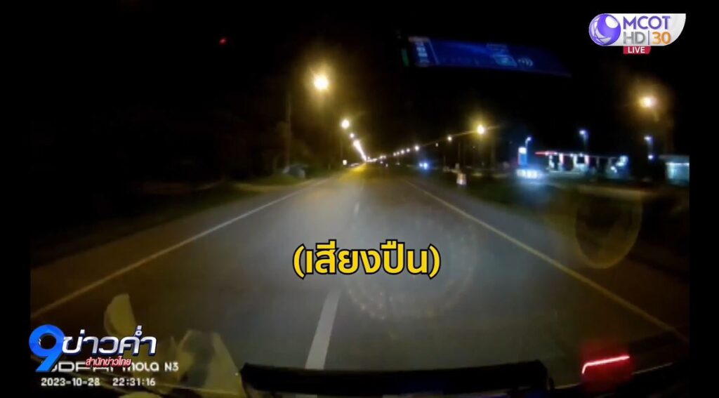 ภาพจากกล้องในรถยนต์ บันทึกที่มาของเสียงดังคล้ายอาวุธปืน เข้ามากระทบกับรถยนต์ ในระหว่างรถกำลังวิ่ง เแต่วิถีกระสุนมากระทบกับเหล็กภายในรถ ทำให้คนในรถบาดเจ็บไม่มาก
