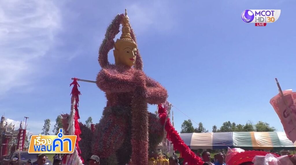 ขณะเดียวกันหลังจบงานบุญฐิน เจ้าภาพยังมีการแจกไข่ไก่ 100,000 ฟอง คนละ 1 แผง อีกด้วย อาจาร์ย ณรากฤต พันธ์เจริญ เจ้าภาพ กล่าวว่า ที่หมู่บ้านแห่งนี้จะมีการสร้างองค์ท้าวเวสุวรรณโณ ขนาดความสูง 29.90 เมตร ด้านในเป็นศาลาปฏิบัติธรรม สามารถเปิดให้ประชาชนเข้าไปกราบไหว้สักการะพระพุทธเจ้าได้ โดยมีนามว่า ท้าวเวสสุวรรณโณ หรือปู่ทองคำ ลักษณะใบหน้าเป็นองค์เทพมีสีทอง ขณะที่เท้าด้านซ้ายเหยียบกล่องหีบสมบัติไว้ เชื่อกันว่าเป็นเทพที่มีความมั่งคั่งร่ำรวย บันดาลโชคลาภ . – สำนักข่าวไทย