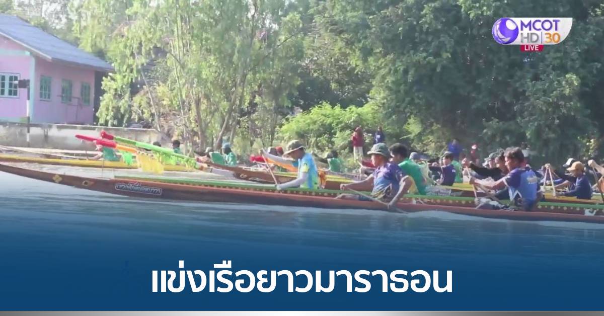 พิจิตร 6 พ.ย. – ชาวโพธิ์ประทับช้าง จ.พิจิตร จัดแข่งขันเรือยาวมาราธอน 8.5 กม. ครั้งแรกของไทย มีเรือร่วมแข่ง 9 ลำ พายจ้ำพายกลางแม่น้ำยม ฝีพายหลายคนหมดแรง เป็นตะคริว ส่วนเรือที่คว้าชัยครั้งนี้คือ ทีมเรือน้องศรันย์ ใช้เวลาเกือบ 21 นาที
