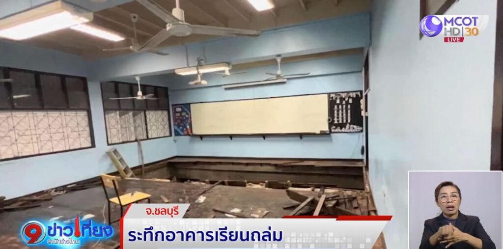 สส.ชลบุรี บอกว่า อาคารเรียนมีอายุกว่า 40 ปีแล้ว จึงทำให้พื้นโครงสร้างรับน้ำหนักไม่ไหว ตอนนี้ทางโรงเรียนกำลังของบประมาณในซ่อมแซมอยู่.-สำนักข่าวไทย