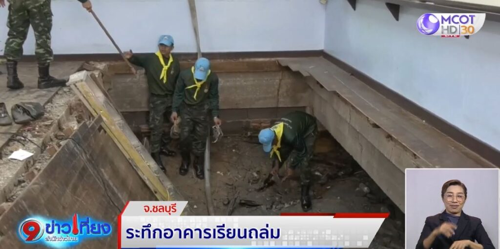 ชลบุรี 10 พ.ย. – ระทึก! พื้นอาคารเรียน โรงเรียนแห่งหนึ่ง อ.พนัสนิคม จ.ชลบุรี ทรุดตัว นักเรียนเกือบ 30 คนตกลงไปด้านล่าง โชคดีทั้งหมดได้รับบาดเจ็บเล็กน้อย