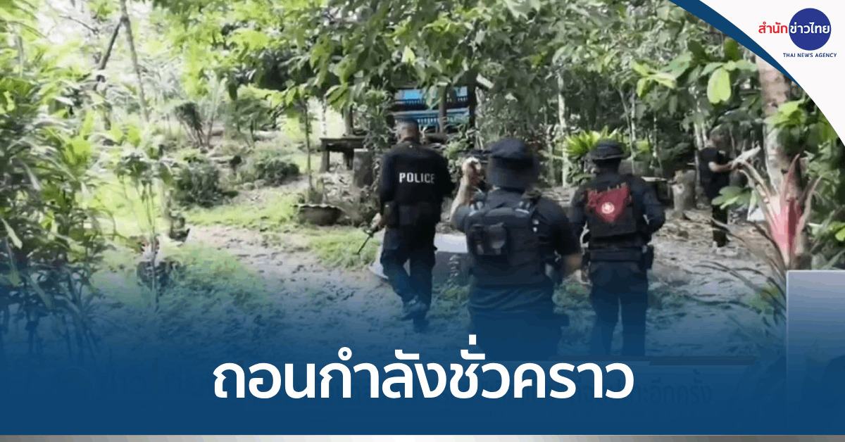 พัทลุง 16 พ.ย. – เจ้าหน้าที่ชุดไล่ล่า “เสี่ยแป้ง” ด้านในเทือกเขาบรรทัด ถอนกำลังชั่วคราว หลังฝนตกหนัก ฮ. บินส่งเสบียงไม่ได้ แต่การไล่ล่ายังไม่ล้มเลิก ปรับกำลังเป็นชุดเล็กเข้าค้นพื้นที่ต้องสงสัยตามแนวเชิงเขา และขนำชาวบ้าน