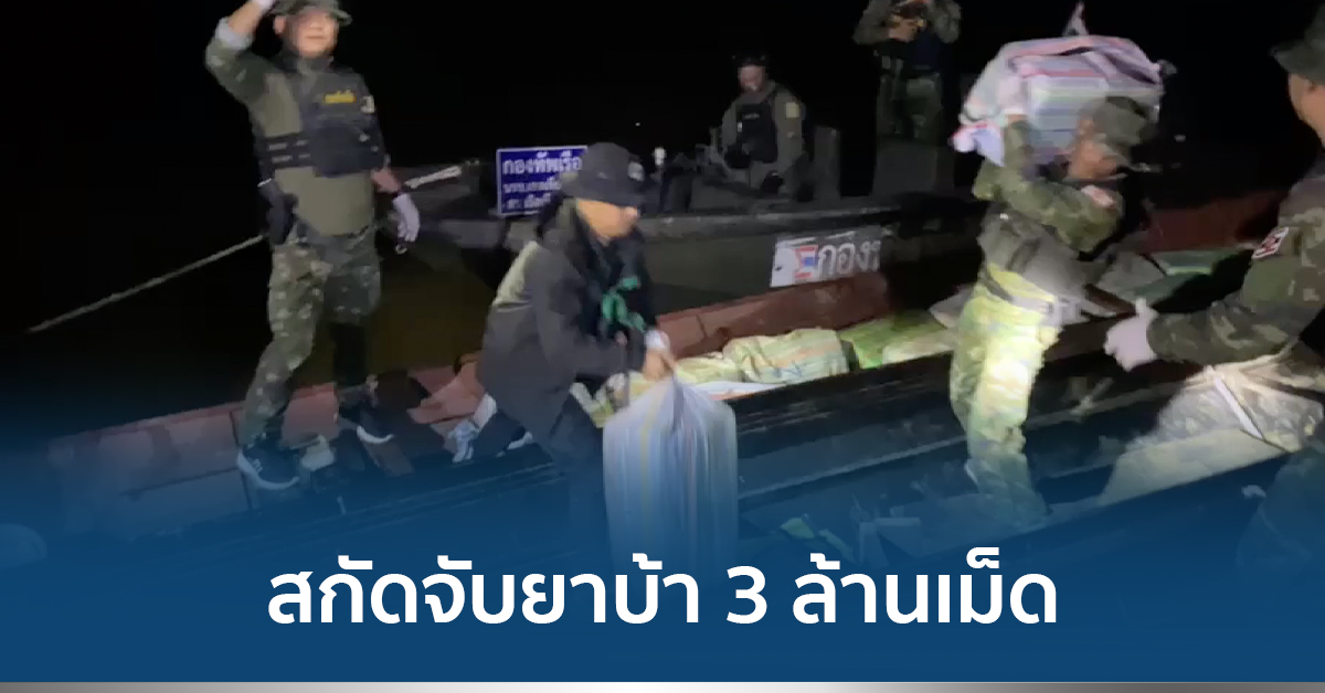 หน่วยเรือรักษาความสงบเรียบร้อยตามลำแม่น้ำโขง เขตเชียงราย ร่วมกับหน่วยเฉพาะกิจกรมทหารพรานที่ 31 กองกำลังผาเมือง ตำรวจตระเวนชายแดน 327 และตำรวจน้ำ ลาดตระเวนออกตรวจตามริมฝั่งแม่น้ำโขง ต่อมาพบเรือยนต์ขนาดเล็กแล่นอยู่ในแม่น้ำโขงมุ่งหน้าฝั่งไทยบริเวณหมู่บ้านสวนดอก หมู่ 8 ต.บ้านแซว อ.เชียงแสน จึงวางกำลังรอตรวจสอบ กระทั่งเรือแล่นมาถึงท้ายเกาะมะโนเข้ามายังฝั่งไทย จึงเข้าไปสกัดเอาไว้ ทันทีที่คนบนเรือเห็นเจ้าหน้าที่จึงได้กระโดดลงน้ำหลบหนีไป เจ้าหน้าที่จึงตรวจยึดเอาไว้ พร้อมตรวจสอบบนเรือพบกระสอบฟางจำนวน 15 ใบ ภายในมียาบ้าประมาณ 3 ล้านเม็ด จึงตรวจยึดเอาไว้และขยายผลจับกุมผู้ร่วมขบวนการ .-สำนักข่าวไทย