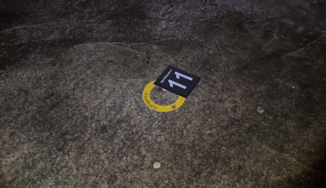 ในที่เกิดเหตุเจ้าหน้าที่พบอาวุธปืนขนาด 9 มม. ตกอยู่หน้าบ้าน 1 กระบอก ในแม็กกาซีนถูกยิงออกไปแล้ว 4 นัด เหลือค้างอยู่อีก 4 นัด และพบปลอกกระสุนปืนตกอยู่ 3 ปลอก พร้อมหัวกระสุน