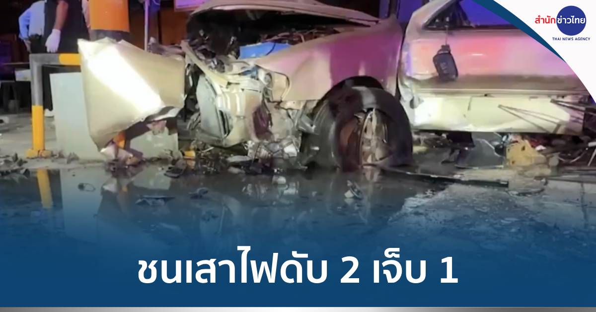 สมุทรปราการ 25 พ.ย.-หนุ่มใหญ่ไปเที่ยวสถานบันเทิงเมืองสมุทรปราการ แต่เงินไม่พอจ่าย ขอกลับไปเอาเงิน พนักงานกลัวชิ่งหนี จึงนั่งรถไปด้วย สุดท้ายเกิดอุบัติเหตุชนเสาไฟฟ้า ตาย 2 เจ็บ 1