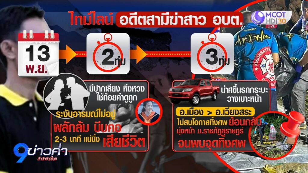 สุราษฎร์ธานี 26 พ.ย. – ตำรวจคุมตัวอดีตสามีโหดไปชี้จุด ทำแผนประกอบคำรับสารภาพฆ่าโบกปูน สาว อบต. เพิ่มพูนทรัพย์ อดีตภรรยา ยัดท่อระบายน้ำ