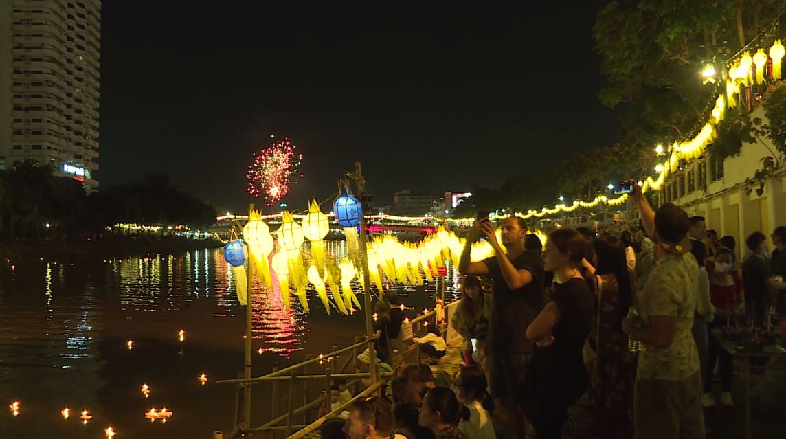 เชียงใหม่ 27 พ.ย. – ประเพณียี่เป็ง หรือลอยกระทง ที่ จ.เชียงใหม่ ยังคงเต็มไปด้วยนักท่องเที่ยวทั้งชาวไทยและต่างชาติ รวมทั้งการแสดง แสง สี เสียง บริเวณริมฝั่งแม่น้ำปิง และความงดงามของสีสันวัฒนธรรมล้านนา. – สำนักข่าวไทย