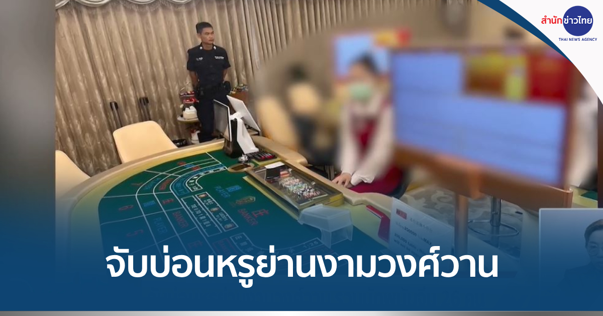 นนทบุรี 29 พ.ย. – ตำรวจ ตม. บุกจับบ่อนหรูขนาดใหญ่บนโรงแรมแห่งหนึ่งย่านงามวงศ์วาน จ.นนทบุรี พบนักพนันเป็นคนรวยไฮโซและคนจีน ยึดอุปกรณ์การเล่นและเงินสดกว่า 3.5 ล้านบาท
