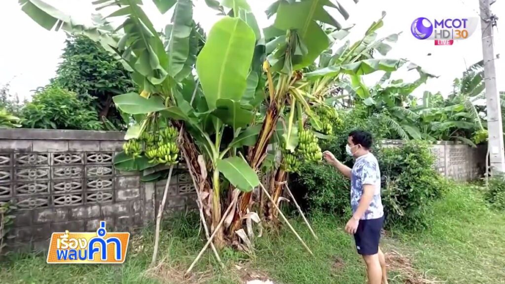 ชาวบ้านบอกว่าเห็นต้นกล้วยกอนี้ขึ้นมานานแล้ว แต่ไม่ทราบเจ้าของบ้านหรือมีคนอื่นนำมาปลูกไว้นอกกำแพงริมถนน คราวนี้สังเกตเห็นความผิดปกติว่าออกหลายเครือ มันแปลกดีดูใกล้ ๆ ออก 5 เครือ ตอนนี้เริ่มสุกเหลือง มีชาวบ้านบางคนมาขอโชคขอลาภ ตีเป็นเลขเด็ดนำไปเสี่ยงโชค บางคนก็นับหวี. – สำนักข่าวไทย