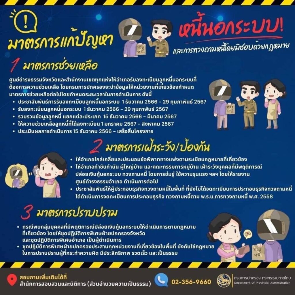 หลังรัฐบาลจัดให้การแก้หนี้นอกระบบเป็นวาระแห่งชาติ และเปิดให้ลงทะเบียนวันนี้เป็นวันแรก โดยที่ศูนย์ดำรงธรรม ของอำเภอเมือง จังหวัดเชียงใหม่ ลูกหนี้ต่างทยอยเดินทางมาขอรับความช่วยเหลือในการลงทะเบียน เนื่องจากไม่สามารถลงทะเบียนออนไลน์ได้ โดยเจ้าหน้าที่จะอำนวยความสะดวกให้ประชาชนที่เป็นลูกหนี้นอกระบบ เริ่มด้วยการโหลดแอพพลิเคชั่นไทยดี “THAID” เพื่อยืนยันตัวตนก่อนจะช่วยกรอกข้อมูลไปยังเว็บไซต์ https://debt.dopa.go.th ส่วนรายที่ไม่มีสมาร์ทโฟน เจ้าหน้าที่ก็ให้กรอกข้อมูลในเอกสารและจะดำเนินการลงทะเบียนออนไลน์ให้ต่อไป