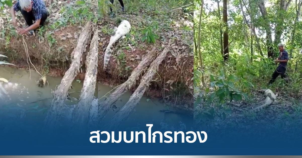 ตราด 1 ธ.ค. – สามารถสมชื่อ ชายวัย 54 ปี ที่ จ.ตราด สวมบทไกรทอง จับจระเข้ความยาวกว่า 2 เมตร นอนแช่น้ำในสวนยางพาราสบายใจ