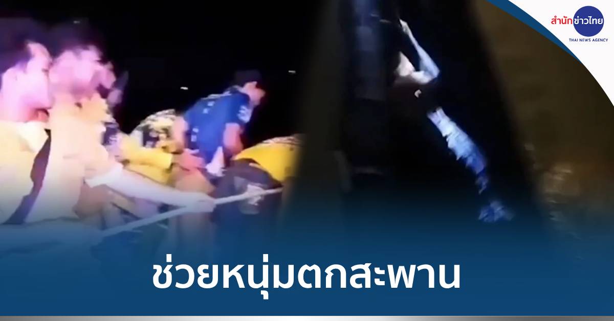 เมื่อเวลา 4.30 น. ที่ผ่านมา กู้ภัยไตรคุณธรรมได้รับแจ้งมีคนตกสะพานใหม่ ตำบลบ้านสวน อำเภอเมือง จังหวัดชลบุรี จึงรุดไปตรวจสอบที่เกิดเหตุ พบวัยรุ่นอายุประมาณ 17 ปี ตกลงไปในทะเลความสูงจากสะพานเกือบ 5 เมตร ตอนนั้นน้ำทะเลลง มีแต่โคลน กู้ภัยใช้เชือกหย่อนลง ช่วยกันดึงแบบชักเย่อขึ้นมา ใช้เวลากว่า 20 นาที สอบถามหนุ่มที่ตกลงไปบอกว่านั่งเล่นขอบสะพานแล้วพลาดตกลงไป.-สำนักข่าวไทย