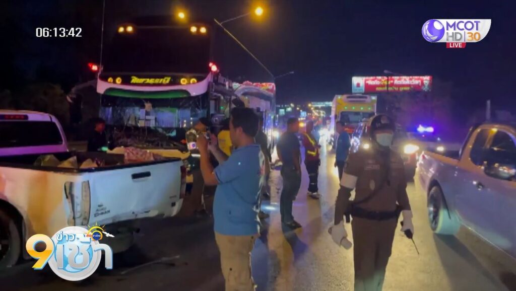 นครราชสีมา 4 ธ.ค. – รถบัสนำเที่ยว ชน 9 คันรวด บนถนนมิตรภาพ ติดขัดเป็นทางยาว คนขับเผยมีรถตัดหน้ากะทันหัน หักหลบ แต่เบรกไม่อยู่