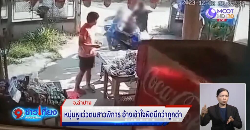 ลำปาง 4 ธ.ค. – หนุ่มกำยำหาเรื่องสาวพิการ ผลักจนมอเตอร์ไซค์ล้มก่อนตบซ้ำ ลูกชายวัยขวบเศษนั่งซ้อนด้านหน้าเจ็บด้วย คนก่อเหตุอ้างหูแว่ว