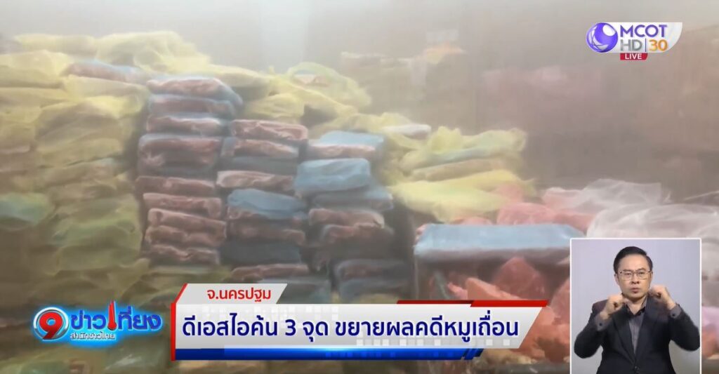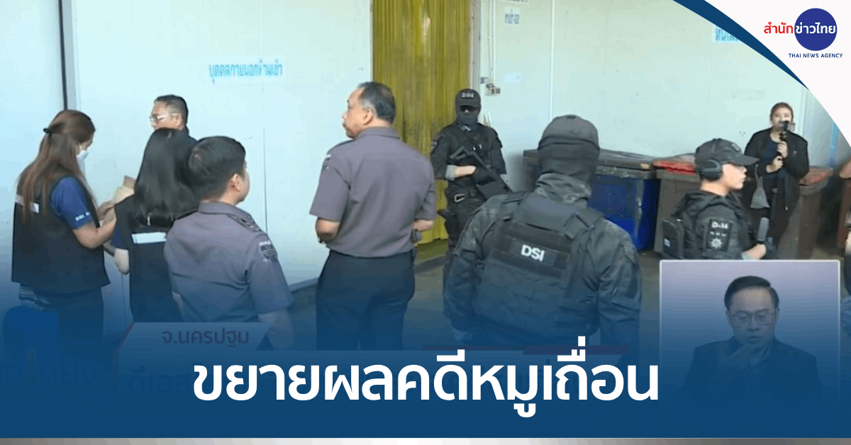 นครปฐม 7 ธ.ค. – ดีเอสไอ ขยายผลคดีหมูเถื่อน 161 ตู้ กระจายกำลังค้น 3 จุด ในจังหวัดนครปฐม หลังพบเจ้าของเคยเกี่ยวข้องกับผู้ต้องหาสองพ่อลูกที่เข้ามอบตัวก่อนหน้านี้