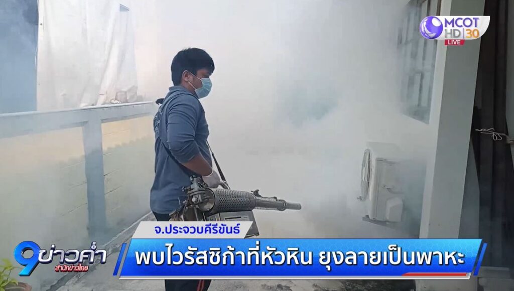เจ้าหน้าที่สาธารณสุขอำเภอเมืองประจวบคีรีขันธ์ เทศบาลเมืองประจวบคีรีขันธ์ และเจ้าหน้าที่อาสาสมัครสาธารณสุข (อสม.) ลงพื้นที่หมู่บ้านชุมชน สร้างการรับรู้ เร่งพ่นหมอกควันกำจัดลูกน้ำยุงลายตามแหล่งน้ำ ท่อระบายน้ำ ในพื้นที่หมู่บ้านชุมชน และบ้านเรือนประชาชน หลังตรวจพบการติดเชื้อโรคไข้เลือดออก เพื่อป้องกันการแพร่ระบาดของไข้เลือดออกและไวรัสซิกา ขยายวงกว้าง เนื่องจากโรคไข้เลือดออกกับโรคติดเชื้อไวรัสซิกา มียุงลายเป็นพาหะ