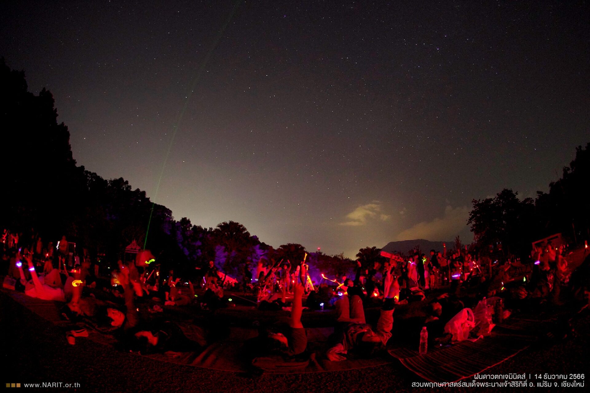 ด้านสื่อสังคมออนไลน์คึกคักขึ้นอันดับเทรนด์ไทยยอดนิยม ปีนี้เป็นปีที่เหมาะแก่การสังเกตการณ์ฝนดาวตกอย่างมาก เนื่องจากไร้แสงจันทร์รบกวนตลอดคืน ผู้ที่อยู่ในเขตพื้นที่ปราศจากแสงรบกวน มีทัศนวิสัยท้องฟ้าดี ไม่มีเมฆบดบัง สามารถชมความสวยงามของฝนดาวตกได้อย่างเต็มตา ซึ่ง สดร.ได้จัดกิจกรรมชมฝนดาวตกเจมินิดส์ ที่สวนพฤกษศาสตร์สมเด็จพระนางเจ้าสิริกิติ์ อ.แม่ริม จ.เชียงใหม่ มีประชาชนให้ความสนใจเข้าร่วมกิจกรรมกว่า 1,000 คน ปักหลักชมฝนดาวตกกันเต็มพื้นที่ สามารถสังเกตฝนดาวตกได้หลายดวง และเห็นดาวตกชนิดลูกไฟ (Fireball) หลายสิบดวง เมื่อมีผู้พบเห็นฝนดาวตกก็ต่างส่งเสียงร้องชี้ชวนกันให้ดู สร้างบรรยากาศที่สนุกสนานและน่าประทับใจตลอดคืน. – สำนักข่าวไทย