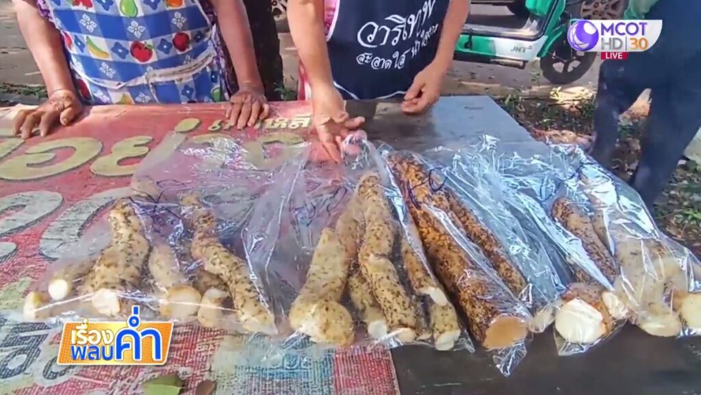 คุณลุงอ่วม ส่องกระโทก วัย 71 ปี ชาวบ้าน ต.โคกกระชาย อ.ครบุรี จ.นครราชสีมา ใช้เวลาว่างหลังจากสิ้นสุดฤดูกาลเก็บเกี่ยวข้าวนาปี ตระเวนหาขุดมันป่า ตามป่าชุมชนใกล้หมู่บ้าน เพื่อนำมาประกอบอาหาร ลดภาระค่าใช้จ่ายในครัวเรือน และจำหน่ายเป็นรายได้เสริม