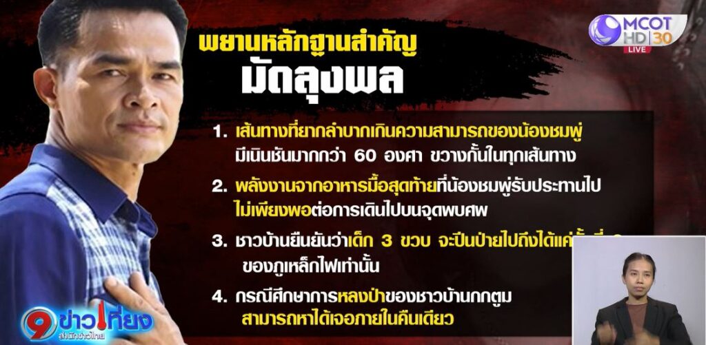 1.เชื่อว่าคนร้ายเป็นคนใกล้ชิด และจากการตรวจสอบ ผู้เกี่ยวข้องทั้งหมดรวม 14 คน แบ่งเป็นญาติ 12 คน และบุคคลใกล้ชิด 2 คน พบว่า 13 คน มีหลักฐานยืนยันที่อยู่หรือตำแหน่งอ้างอิงจากโทรศัพท์เคลื่อนที่ชัดเจน ยกเว้นจำเลยที่ 1 หรือ ลุงพล ซึ่งไม่สามารถยืนยันที่อยู่ได้แน่ชัดในเวลาที่ผู้ตายหายตัวไป