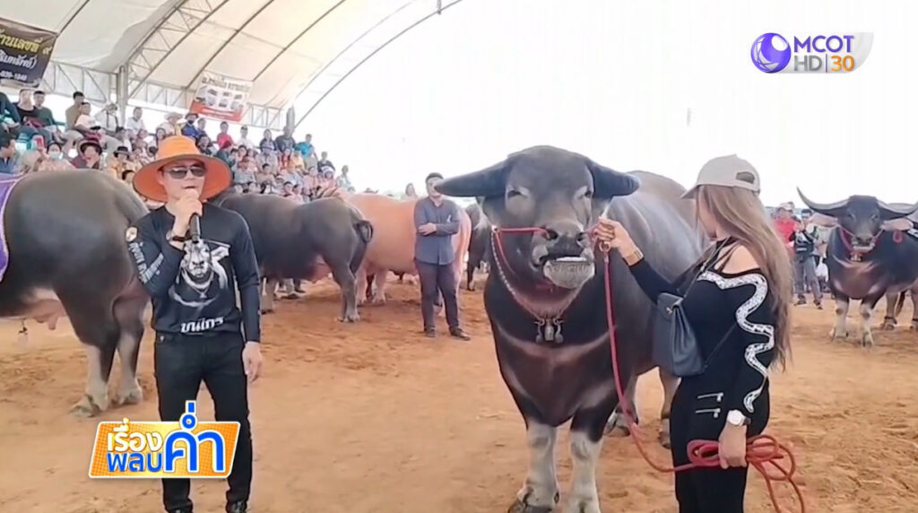 ปราจีนบุรี 21 ธ.ค.-บรรยากาศงานประกวดควายงาม สุดคึกคัก นักร้องลูกทุ่งชื่อดังโชว์ควายงาม ร้องเพลงสร้างสีสัน งานนี้เจ้าเมืองปราจีนบุรี ขี่พญาควายโชว์หลังเปิดงาน