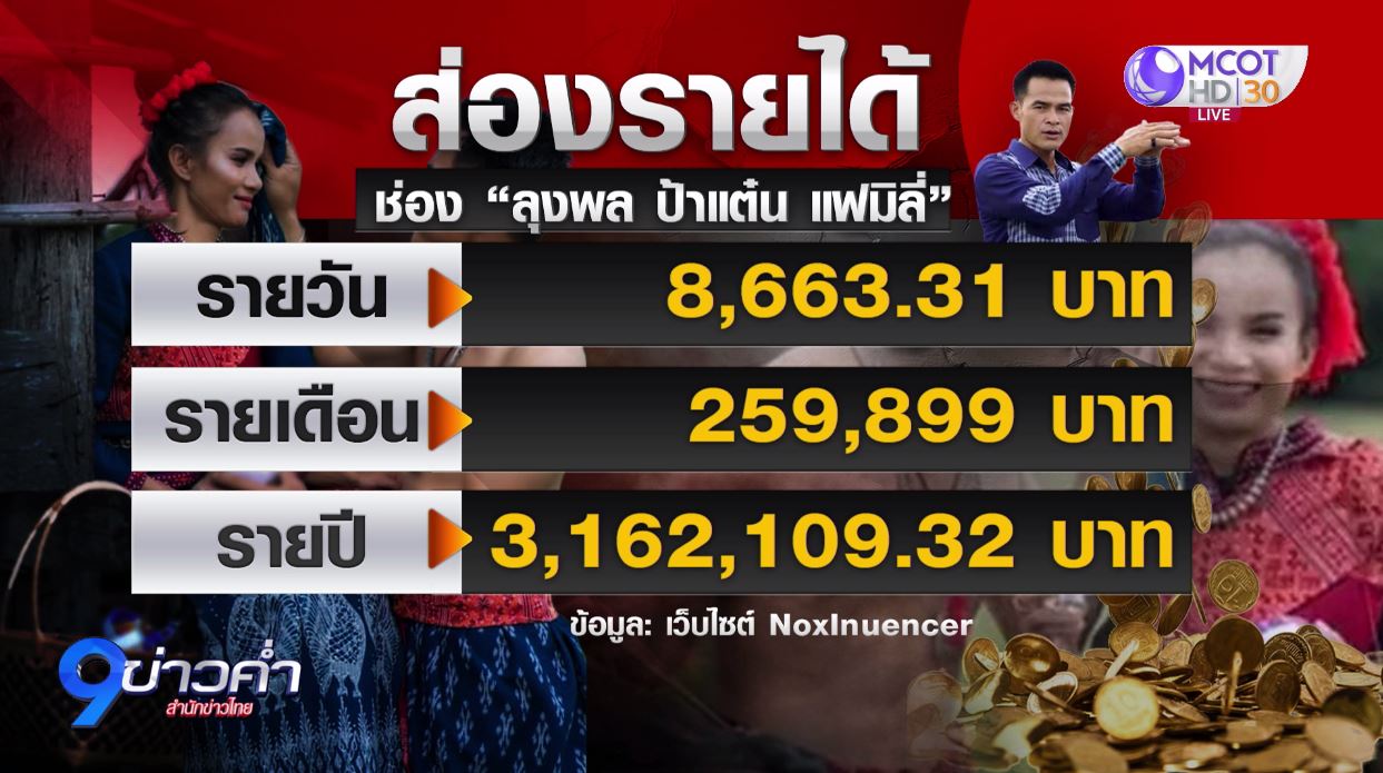 สำหรับรายได้ช่อง Youtube อ้างอิงจากเว็บไซต์ NoxInfluencer ซึ่งเป็นระบบการให้บริการข้อมูลและวิเคราะห์เชิงลึกของ Influencer ได้รวบรวมฐานและจัดอันดับคนดังในสื่อออนไลน์ พบว่า เมื่อนำลิงก์ช่อง “ลุงพลป้าแต๋น แฟมิลี่” ตรวจสอบพบว่า
