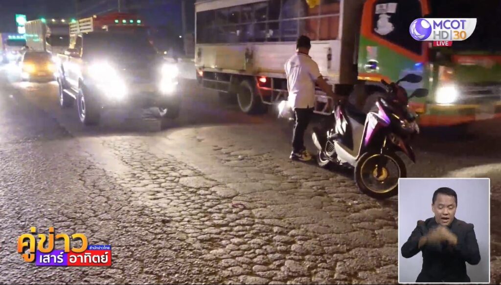 ตำรวจ สภ.บางปะกง พร้อมหน่วยกู้ภัยฉะเชิงเทรา ตรวจสอบเหตุรถชนกัน บริเวณจุดกลับรถที่นอนปีนัง ถนนสิริโสธร ขาเข้าฉะเชิงเทรา หมู่ 1 ต.หนองจอก อ.บางปะกง พบนายธีระพงษ์ อายุ 37 ปี ผู้ขี่รถจักรยานยนต์ นอนได้รับบาดเจ็บอยู่กลางถนน โดยถูกล้อรถกระบะเหยียบกลางตัว เจ้าหน้าที่เร่งปฐมพยาบาลก่อนนำส่งโรงพยาบาลจุฬารัตน์ 11 ใกล้กันพบรถกระบะสีดำจอดอยู่ มีนายบุญนัก อายุ 42 ปี เป็นคนขับ สอบสวนนายบุญนัก ให้การว่า ขณะที่ตนกำลังเลี้ยวกลับรถตนมองไม่เห็นรถจักรยานยนต์ของนายธีระพงษ์ที่ขี่มาทางตรง จนมารู้สึกตัวอีกทีก็ตอนที่รถกระโดดคล้ายเหยียบอะไรก่อนจะจอดลงมาดู