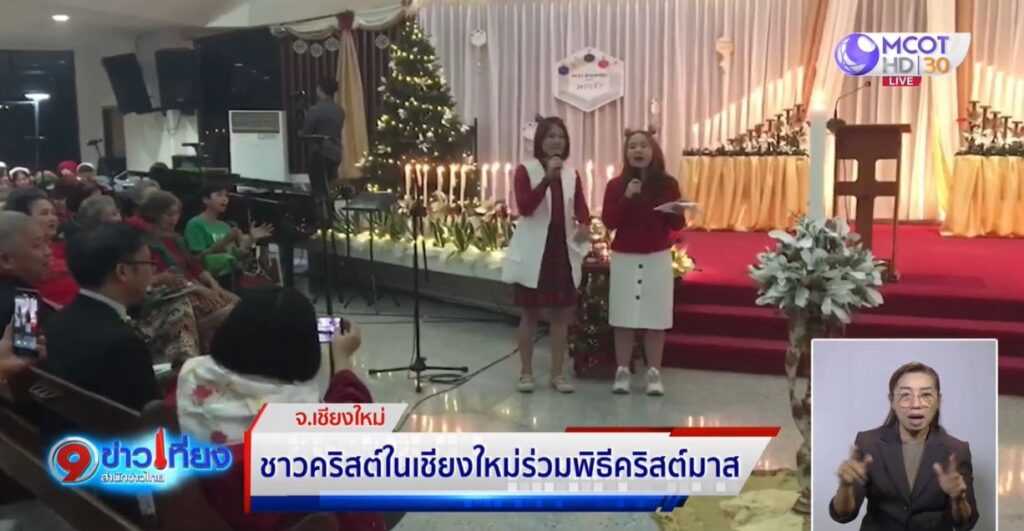 ส่วนที่คริสตจักรที่ 1 เชียงใหม่ มีพิธีนมัสการพระเจ้าด้วยแสงเทียน และร่วมเฉลิมฉลองในวันคริสต์มาส ประจำปี 2023 มีการร้องเพลงและทำพิธีกรรมต่างๆ ซึ่งปีนี้ มีคริสต์ศาสนิกชนพาครอบครัวมาร่วมพิธีจำนวนมาก จนล้นออกมานอกโบสถ์ มีการตกแต่งต้นคริสต์มาสประดับไฟสูงเกือบ 10 เมตร ด้านหน้าโบสถ์ พร้อมประดับไฟอย่างสวยงาม รวมทั้งจัดนิทรรศการและจำลองสถานที่ประสูติของพระเยซู นอนในรางหญ้า และประวัติของพระองค์ เพื่อให้ทราบความเป็นมาของพระองค์