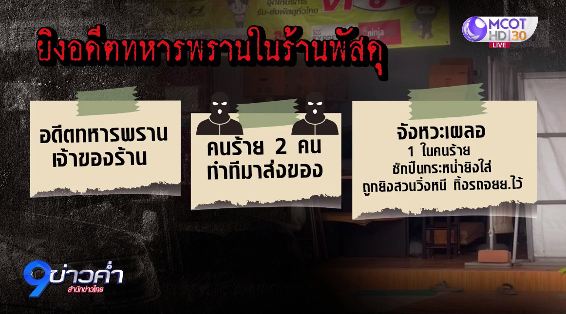 ตรวจสอบประวัติพบผู้ตายเป็นอดีตทหารพราน ลาออกมาเปิดร้านรับส่งพัสดุ ก่อนเกิดเหตุผู้ตายกำลังจัดร้านอยู่ มีคนร้าย 2 คน ขี่รถจักรยานยนต์คันดังกล่าวมาจอดไว้ ก่อนคนร้ายทั้งสองคนทำทีเดินเข้ามาในร้านเพื่อส่งของ ซึ่งระหว่างนั้นผู้ตายเอะใจแล้ว และได้นำอาวุธปืนติดตัวไว้ ระหว่างที่หนึ่งในคนร้ายยืนคุยกับผู้ตาย คนร้ายอีกคนได้ชักอาวุธปืนกระหน่ำยิงผู้ตายจนล้มลง ผู้ตายแข็งใจพยายามชักอาวุธปืนยิงต่อสู้กับคนร้ายหลายนัด จนคนร้ายวิ่งหนีและทิ้งรถจักรยานยนต์ ก่อนที่ผู้ตายจะเสียชีวิตในเวลาต่อมา