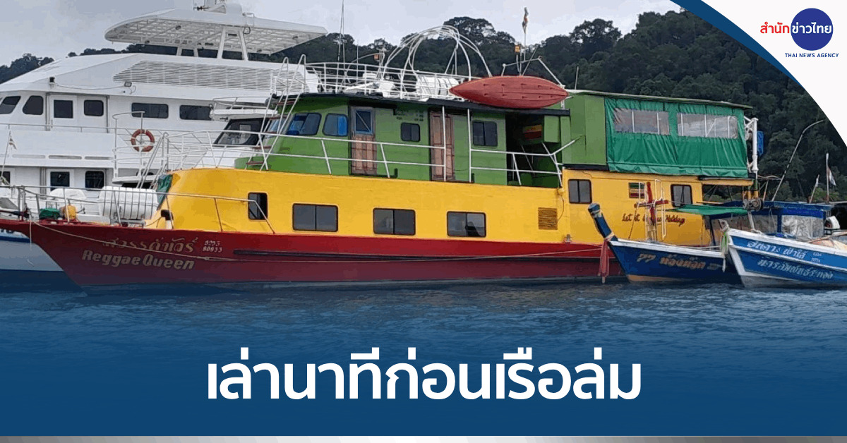 พังงา 26 ธ.ค. – เจ้าหน้าที่ยังระดมกำลังค้นหา 2 ผู้สูญหาย จากเหตุเรือทัวร์ดำน้ำล่มบริเวณเกาะตอรินลา จ.พังงา ขณะที่กัปตันเล่านาทีก่อนเรือล่ม คลื่นลมแรง น้ำซัดเข้าเรือจนสูบออกไม่ทัน