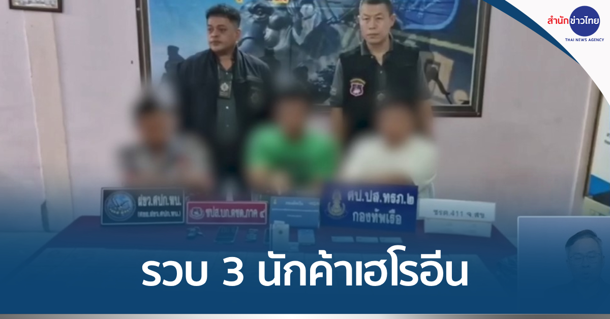 สงขลา 31 ธ.ค. – ตชด.43 รวบนักค้าเฮโรอีน 3 คน ขณะกำลังนัดส่งมอบเฮโรอีนกันที่หน้าร้านสะดวกซื้อ หน้าสนามบินหาดใหญ่ ยึดเฮโรอีน 30 แท่ง มูลค่าถึง 22 ล้านบาท
