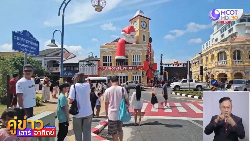 ตั้งแต่เช้าเป็นต้นมา นักท่องเที่ยวทั้งชาวไทยต่างชาติพากันแห่ไปชมและถ่ายภาพเป็นที่ระลึกกับ “ลุงซานต้า” ซึ่งเกาะอยู่บนอาคารตึกชาร์ตเตอร์ ซึ่งตึกนี้ในอดีตโบราณมาเลยคือเคยเป็นสถานีตำรวจหรือว่าโรงพักเก่าของภูเก็ต ปัจจุบันเป็นหนึ่งในแลนด์มาร์กของตัวเมืองภูเก็ต ที่ปกตินักท่องเที่ยวให้ความนิยมอยู่แล้วแต่ปีนี้คึกคักยิ่งขึ้นไปอีก เพราะปีนี้บริเวณนั้นมีการจัดงานถนนคนเดินในย่านเมืองเก่าภูเก็ต ทั้งถนนพังงา ถนนถลาง และพื้นที่โดยรอบ ทำให้บรรยากาศในย่านเมืองเก่าภูเก็ต แทบทุกเส้นในวันส่งท้ายปีคึกคักยิ่งไปอีก โดยในค่ำคืนนี้บริเวณแยก charter Bank เขาจะมีการจัดงานเคาท์ดาวน์มีการแสดงพลุและการลุ้นตั๋วเครื่องบินไปกลับในประเทศให้กับผู้ที่ไปร่วมงานด้วย.-สำนักข่าวไทย