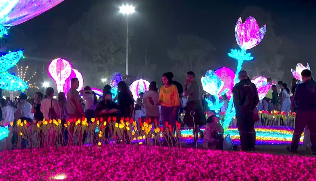 เชียงใหม่ 31 ธ.ค. – ค่ำคืนสุดท้ายของปี ก่อนก้าวสู่ปีใหม่ที่ จ.เชียงใหม่ ถือเป็นอีกจุดหนึ่งที่มีนักท่องเที่ยวไปรอนับถอยหลังเข้าสู่ปีใหม่กันอย่างคึกคัก โดยเฉพาะงานอะเมซซิ่งเชียงใหม่เคาท์ดาวน์ 2024 ที่สวนเฉลิมพระเกียรติ 82 พรรษา ท่ามกลางดอกไม้และแสงไฟนับล้านดวง