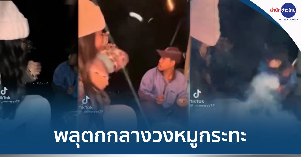 สมาชิกผู้ใช้ Tik Tok โพสต์คลิปนาทีระทึกขวัญ ขณะที่นั่งล้อมวงกินหมูกระทะหน้าเต็นท์ที่พัก รอเคานท์ดาวน์บนภูทับเบิก จ.เพชรบูรณ์ ขณะนั่งกิน มีเสียงพลุดังเป็นระยะๆ แต่ไม่คิดว่าพลุจะตกลงมากลางวงหมูกระทะเสียงดังสนั่น ประกายไฟลุกวาบ วงแตกหนีกระเจิง ส่วนเต็นท์ข้างๆ เจอสะเก็ดไฟจากพลุไฟไหม้ซ้ำ เมื่อคืนวันที่ 31 ธ.ค. ที่ผ่านมา