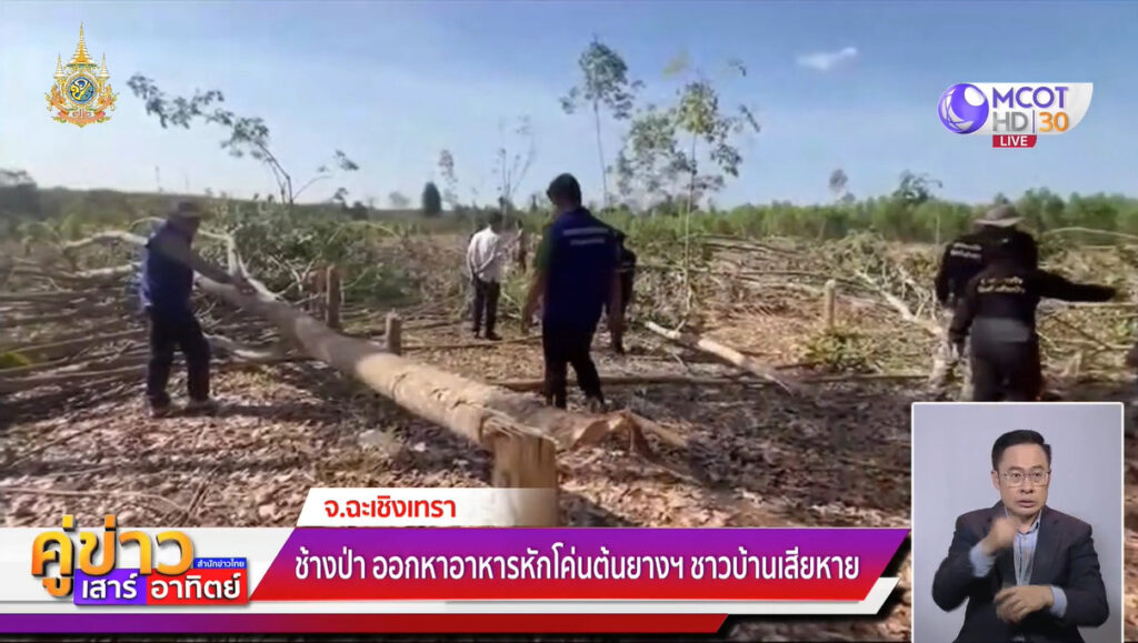 ฉะเชิงเทรา 6 ม.ค. – ช้างป่ากว่า 30 ตัว ออกมาอาหาร หักโค่นกินยอดต้นยางพาราชาวบ้าน เสียหายกว่า 10 ไร่