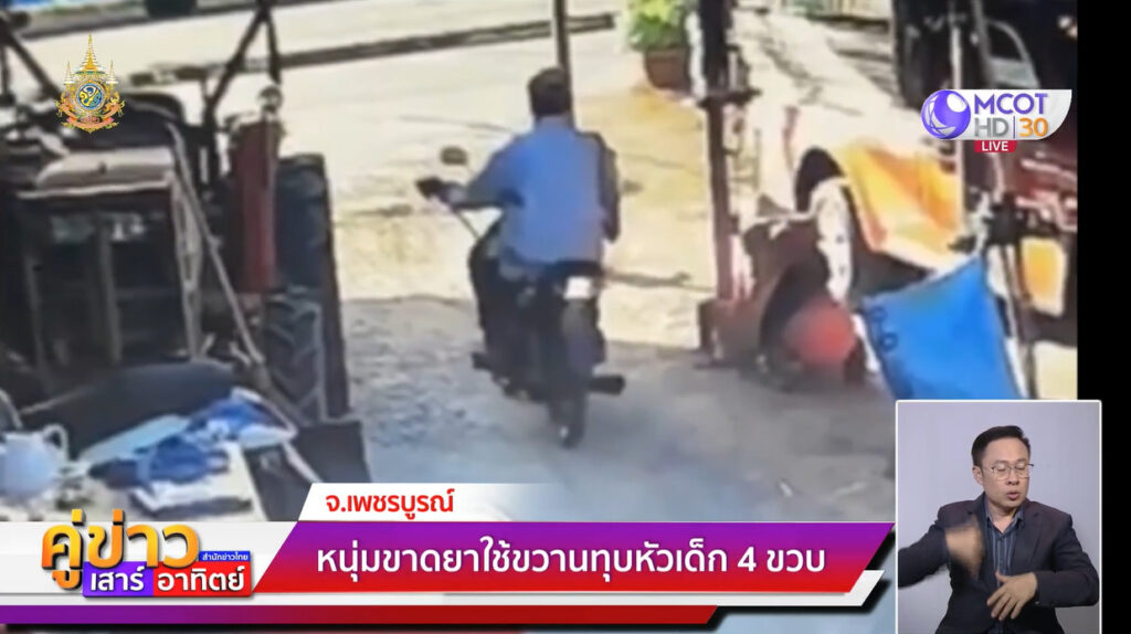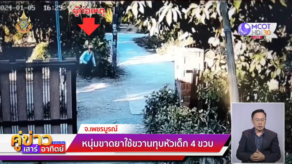 เพชรบูรณ์ 7 ม.ค. – หนุ่มบุกบ้านเพื่อนบ้านใช้ขวานทุบหัวเด็กวัย 4 ขวบ กะโหลกแตก-ฝังสมอง ผ่าตัดเย็บถึง 37 เข็ม ตำรวจตามรวบตัวได้ทันที บอกไม่รู้เรื่อง-ไม่ได้ก่อเหตุ แม่อ้างลูกขาดยา