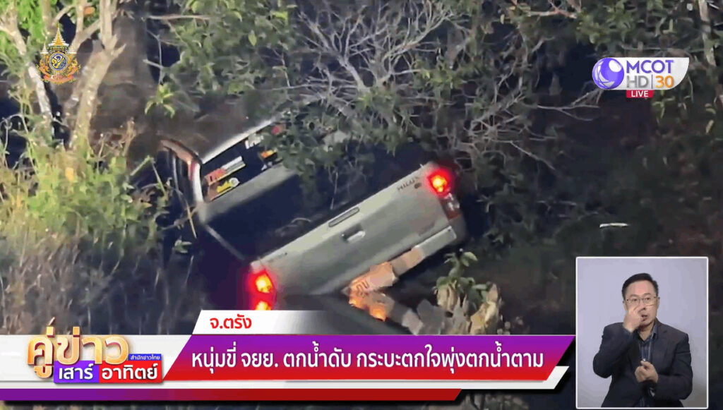 ตำรวจ สภ.เมืองตรัง เข้าตรวจสอบที่เกิดเหตุ พบรถจักรยานยนต์ สีเขียว ทะเบียนตรัง ตกอยู่ในคลองชลประทาน ลึกประมาณ 1 เมตร สภาพพังเสียหาย ส่วนคนขับนอนแน่นิ่งจมน้ำเสียชีวิตติดอยู่กับตัวรถ ทราบชื่อคือนายทัศนะอายุ 40 ปี อาชีพพนักงานห้างสรรพสินค้า จากการตรวจสอบพบว่าผู้ตายเพิ่งออกเวรกำลังจะกลับบ้าน เจ้าหน้าที่ได้ช่วยกันนำร่างและรถจักรยานยนต์ขึ้นมาจากน้ำ พบว่ามีบาดแผลถูกกระแทกที่ศีรษะ ก่อนนำร่างไปชันสูตรพลิกศพอย่างละเอียดอีกครั้งที่โรงพยาบาลตรัง
