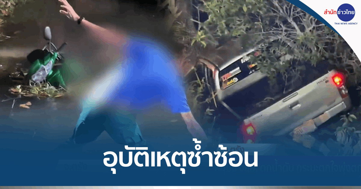 ระหว่างเจ้าหน้าที่ตำรวจกำลังตรวจสอบเหตุรถจักรยานยนต์ พุ่งตกน้ำเสียชีวิตรายแรกไม่ถึง 5 นาที ปรากฏว่า มีรถยนต์กระบะสีบอร์นเงิน ขับผ่านมา เกิดตกใจที่เห็นเจ้าหน้าที่กำลังปฏิบัติงานอยู่ข้างทางจำนวนมาก ทำให้รถเสียหลักพุ่งลงในชลประทาน ห่างจากจุดเกิดเหตุจุดแรกประมาณ 40-50 เมตร จนรถพังยับเยิน คนขับกับแฟนสาวได้รับบาดเจ็บเล็กน้อย .-สำนักข่าวไทย