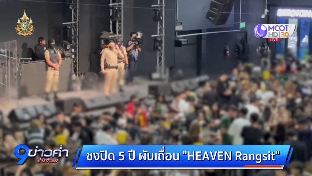 ปทุมธานี 7 ม.ค. – ชงเรื่องสั่งปิดผับเถื่อน “HEAVEN Rangsit” 5 ปี หลังกรมการปกครองเปิดปฏิบัติการ “รังสิตมันร้าย” บุกจับกลางดึก พบเด็กต่ำกว่า 20 เที่ยวดื่มกิน เกือบครึ่งพัน