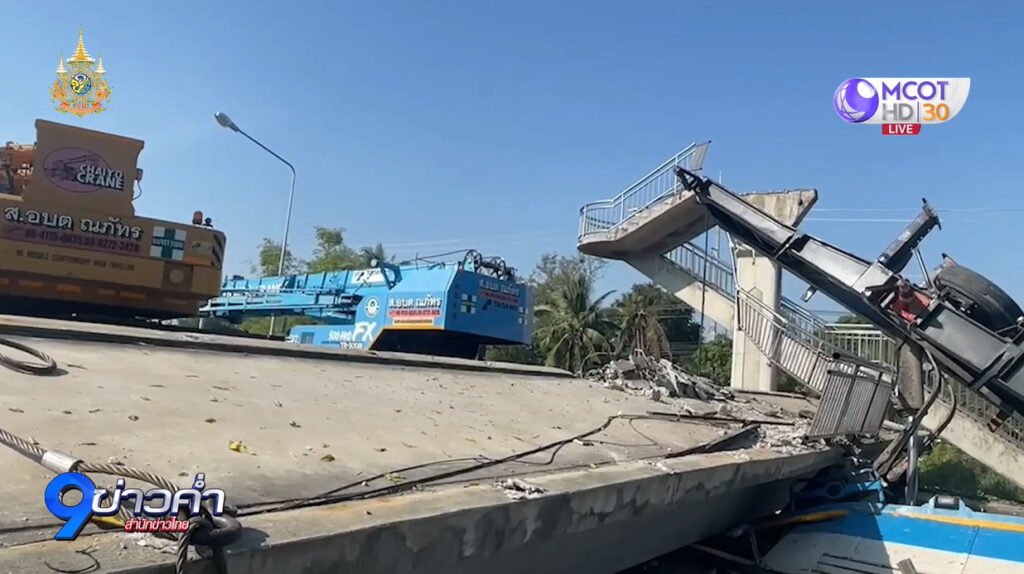 อ่างทาง 7 ม.ค. – ตำรวจแจ้งข้อหาขับรถประมาท กับคนขับเทรลเลอร์ชนสะพานลอยถล่ม ขณะที่กรมทางหลวงย้ายซากสะพานลอยเปิดการจราจรสำเร็จ เตรียมประสานวิศวกรสะพานตรวจสอบโครงสร้าง