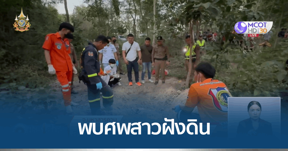มหาสารคาม 9 ม.ค. – พบศพหญิงสาวถูกฝังที่ป่าท้ายหมู่บ้านหนองโพด จ.มหาสารคาม พ่อผู้ตายสงสัยสามี หลังหายตัวไร้ร่องรอย แพทย์เวรคาดถูกฝังทั้งเป็น