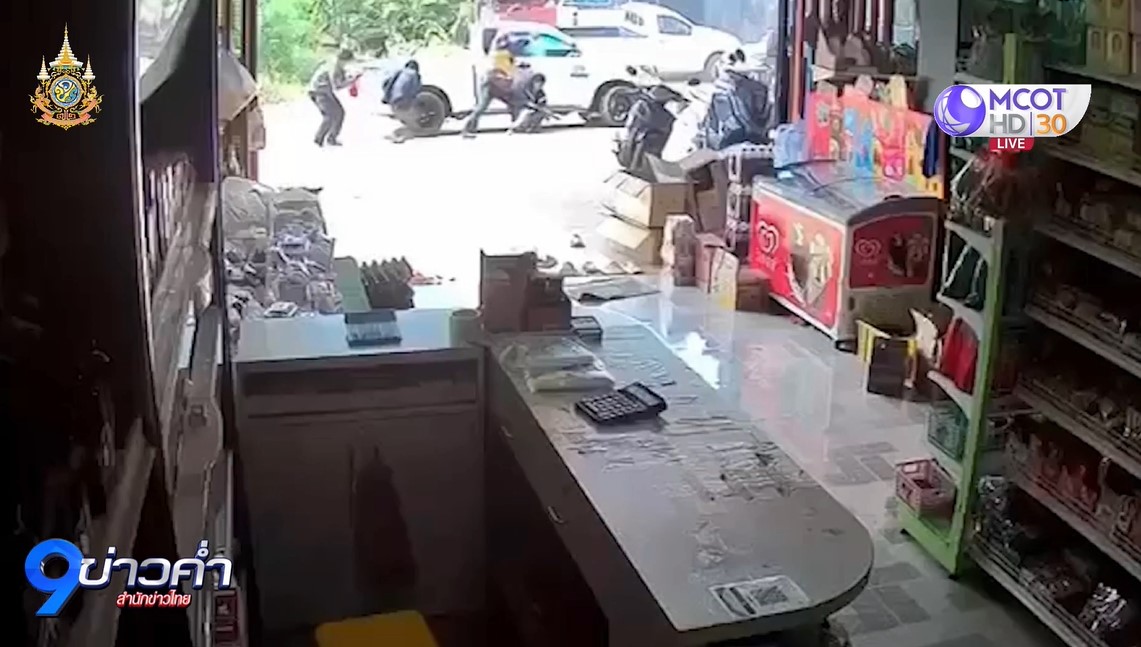 วงจรปิดร้านขายของชำ บริเวณบ้านลูบูกาเยาะ บ้านย่อยบ้านบือชู ม.6 ต.เขื่อนบางลาง อ.บันนังสตา จ.ยะลา เผยภาพ 4 คนร้าย ก่อเหตุอุกอาจ ยิงถล่มเจ้าหน้าที่ ตชด.44 ร้อย.ฉก.ตชด.4412 ฐานปฏิบัติการที่บ้านศรีท่าน้ำ ต.ธารโต อ.ธารโต จ.ยะลา ขณะจอดรถซื้อของจำเป็นหน้าร้านขายของชำในพื้นที่ โดยคนร้ายทั้ง 4 คน ใช้อาวุธสงครามครบมือ วิ่งมาข้างรถกระบะสีขาวของชาวบ้านที่มาจอดซื้อของ ขณะที่ชาวบ้านกำลังเปิดประตูรถ คนร้ายยิงถล่มใส่รถยนต์สีดำของเจ้าหน้าที่