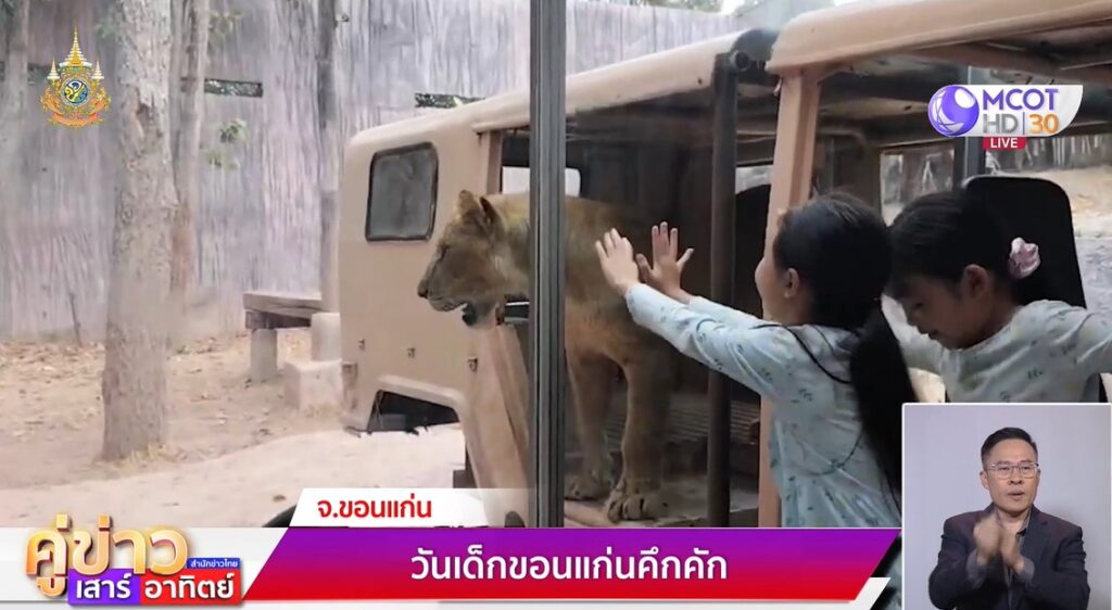 จุดสุดท้ายบริเวณสวนสัตว์ จ.ขอนแก่น มีครอบครัวพาเด็กๆ มาเที่ยวชมสัตว์นานาชนิดเป็นจำนวนมาก มาสคอตแดนซ์ ตอบคำถามมหาสนุก วาดภาพระบายสีสัตว์ป่า ชมความสามารถพิเศษของแมวน้ำแสนรู้ และเล่นน้ำคลายร้อนที่สวนน้ำ.-สำนักข่าวไทย