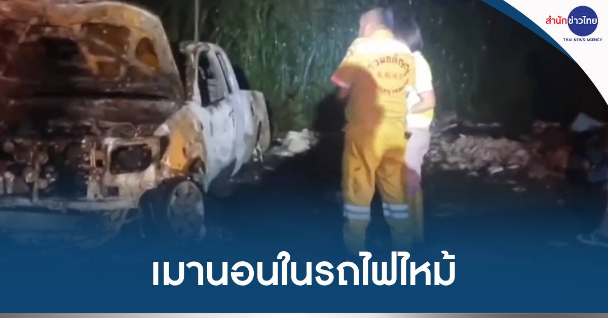 นนทบุรี 14 ม.ค.-รถกระบะไฟไหม้วอดทั้งคัน บริเวณแคมป์คนงาน จ.นนทบุรี ตรวจสอบในรถพบศพชายวัย 38 ปี ถูกไฟคลอกเกรียม เพื่อนร่วมงานคาดเมามากเลยเข้าไปนอนในรถ