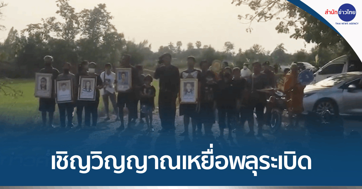 สุพรรณบุรี 19 ม.ค. – 14 ครอบครัวผู้เสียชีวิตจากเหตุพลุระเบิด จ.สุพรรณบุรี นิมนต์พระทำพิธีเชิญดวงวิญญาณ บริเวณจุดเกิดเหตุ